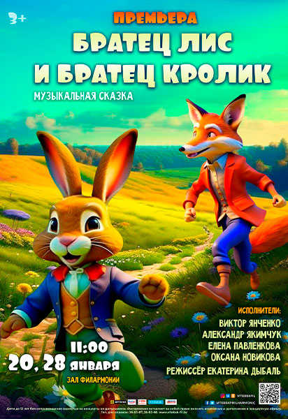 А в воскресенье филармония приглашает детей и их родителей на сказку «БРАТЕЦ ЛИС И БРАТЕЦ КРОЛИК» 3+