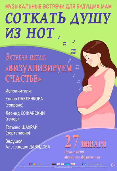 Единственный в стране проект «Соткать душу из нот» представляет собой цикл концертно-познавательных программ для будущих мам, на которых молодые женщины соприкасаются с высокими образцами музыкальной классики, с положительной энергетикой живого музыкального исполнения. Проект разработан директором Витебской областной филармонии Татьяной Савицкой и проходит при партнерской поддержке учреждений здравоохранения Витебска, а также магазина одежды для беременных. На концерте выступят приглашённые специалисты.