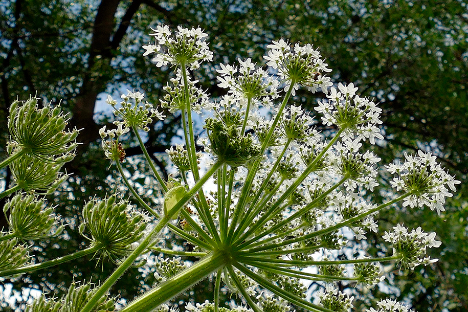 — Если вам не удалось избежать контакта с этим растением и его сок попал вам на кожу, то алгоритм действий следующий. Во-первых, кожу нужно как можно скорее изолировать от солнечного света. Это связано с тем, что компоненты сока активируются при действии ультрафиолета. Если мы начнем прямо на солнце пытаться смыть или стереть сок растения с кожи, то просто увеличим площадь ожога.