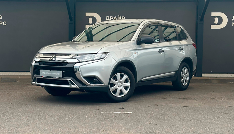 Серебристый Mitsubishi Outlander 2019 г.в. за 71 284 рубля (или 20 800 долларов в эквиваленте*) с бензиновым двигателем на 2 литра и автоматической коробкой передач.