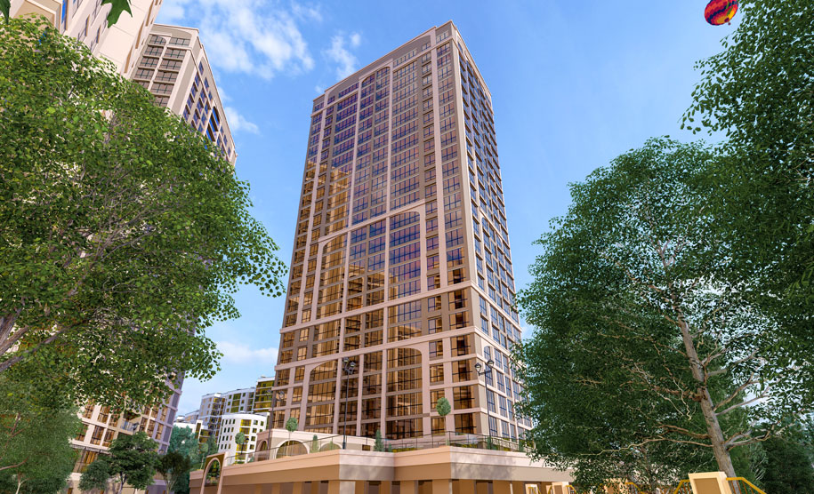 Все квартиры в доме свободной планировки – это позволит вам реализовать любую дизайнерскую идею. При этом панорамное остекление с золотистым оттенком наполнит помещения солнечным светом и подарит ощущение единения с природой.