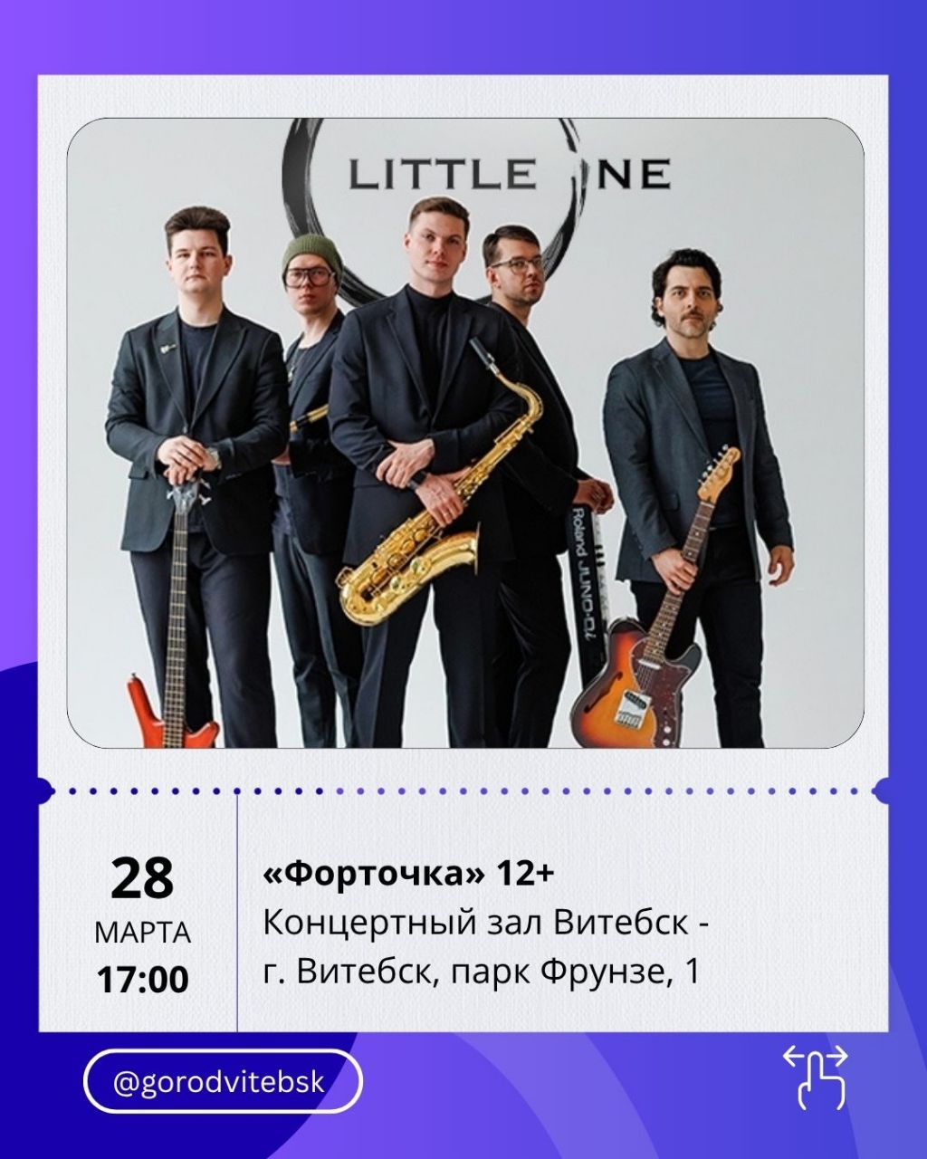 Тем, кто ищет что-то новое, стоит заглянуть на музыкальный проект «Форточка» (17:00, концертный зал «Витебск»). Это площадка для современной белорусской музыки — с живым звуком, импровизацией и смешением жанров.