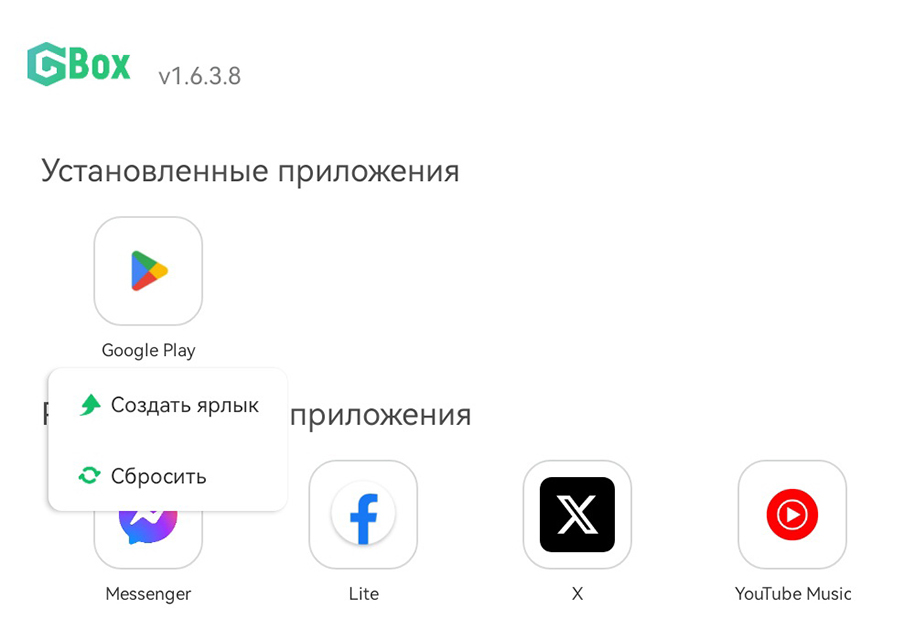 Иконки можно вынести непосредственно на рабочий стол и запускать так же, как и любые другие приложения. Точно такая же процедура доступна и для Google Play. Просто зажимаем иконку, появляется выпадающее меню и в нём выбираем команду «Создать ярлык».