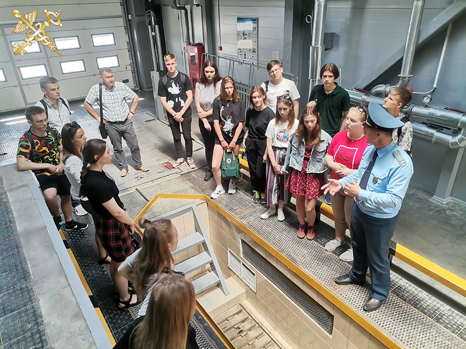 начальник таможенного поста "Бигосово" Владимир Пальчех проводит экскурсию для студентов специальности "Таможенное дело"