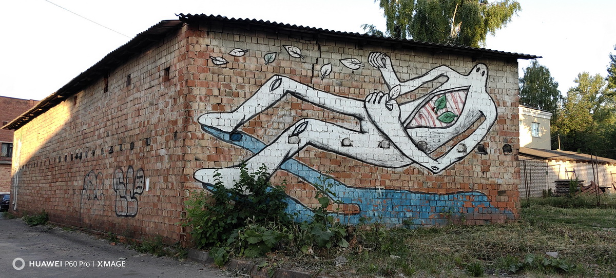 На стене дома на углу улиц Революционная и Красина – красивое концептуальное граффити. Витебск вообще славится своими уличными художниками. По местам особо примечательных граффити городские гиды даже водят экскурсии.