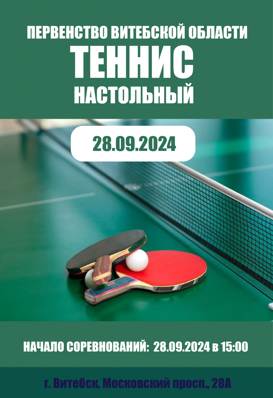 28 сентября 2024 года на базе средней школы №11 состоится первенство Витебской области в программе Олимпийских дней молодежи по теннису настольному среди молодежи 2004 г.р. и моложе. Начало соревнований в 15:00.