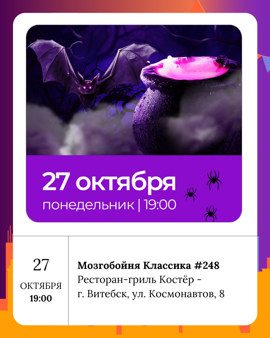 Пусть ваш понедельник будет лёгким, а неделя — продуктивной и вдохновляющей! Планируйте вечера, выбирайте события, зовите друзей — Витебск знает, как скрасить будни. А мы — как напомнить, что жизнь не ограничивается рабочими задачами. До новых встреч в афише!