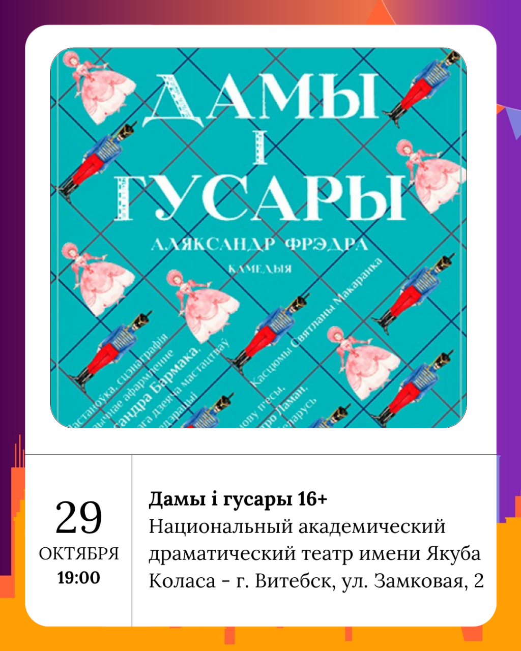 Национальный академический драматический театр имени Якуба Коласа в среду приглашает на спектакль Дамы і гусары 16+, а в четверг - на Нібыта хворы 16+. Классика и комедия — на любой вкус.