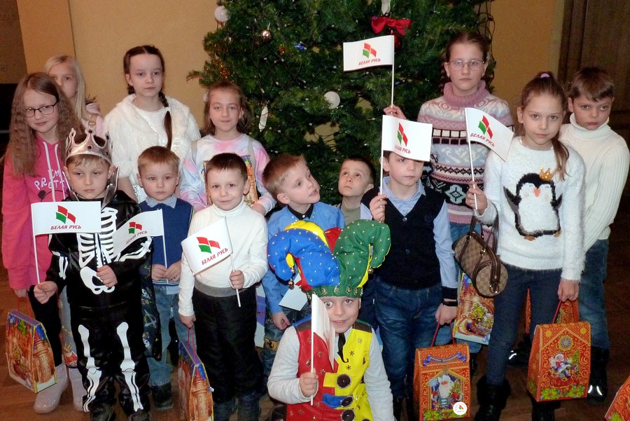 После спектакля в фойе ребят ждали встреча с Дедом Морозом, Снегурочкой и другими сказочными персонажами, хоровод у елки с ростовыми куклами, конкурсы, игры, фотосессия. Вместе со вкусными подарками дети получили от «Белой Руси» книги, краски, карандаши, фломастеры, а также флажки с символикой этого общественного объединения – на память.
