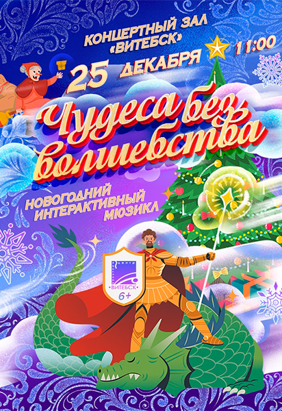 Новый год – время чудес, превращений и волшебства! А как же придёт Новый год в этот раз? Издавна земля наша славилась богатырями, людьми сильными и смышлёными, и как герои одолеют нечисть, чтобы вместе с вами встретить Новый год, взрослые и дети узнают, посетив новогодний мюзикл «ЧУДЕСА БЕЗ ВОЛШЕБСТВА» также в субботу и в воскресенье.