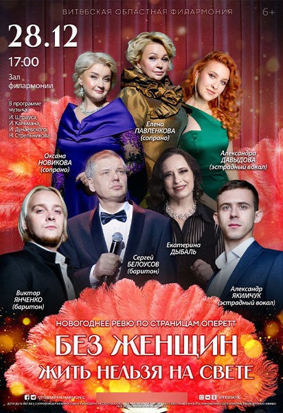 Завтра там же в 17.00 - музыкальное ревю по страницам оперетт «БЕЗ ЖЕНЩИН ЖИТЬ НЕЛЬЗЯ НА СВЕТЕ» 6+.