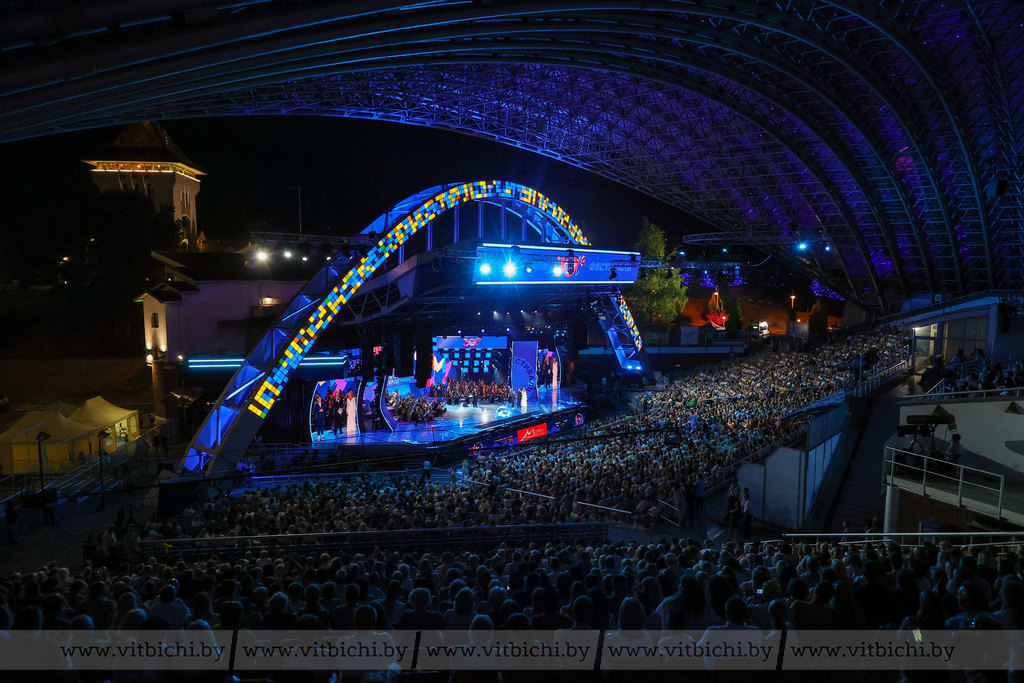 В павильоне "Республика Беларусь" на главной российской выставке будет смонтирована уникальная металлическая конструкция, имитирующая сценическую арку главной сцены витебского фестиваля - Летнего амфитеатра. Под сводом арки в свете встроенных софитов разместят 32 (столько же, сколько лет исполняется фестивалю) фотоснимка, отражающих незабываемые мгновения фестиваля разных годов. Презентацию будут сопровождать выступления популярных российских и белорусских артистов.