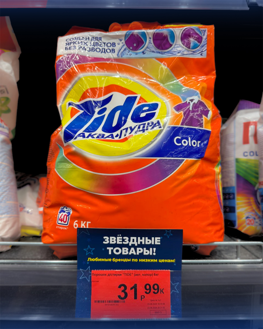 Много и средств гигиены. Так 4 рулона мягкой туалетной бумаги Zewa стоят всего 3,99 руб., прокладки Carefree Panty Liners — 8,99 руб. Тампоны O.B. Pro Comfort доступны за 7,99, а антиперспирант Rexona — за 6,99. Выгодные цены установлены и на стиральный порошок Tide — всего 31,99 руб. за упаковку в 6 кг.