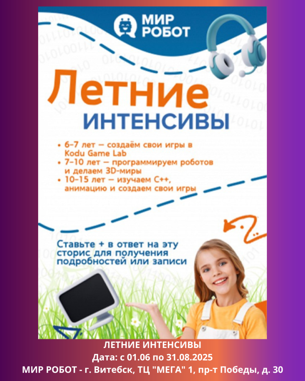 В МИР РОБОТ – школе робототехники, программирования и 3D-моделирования продолжаются летние интенсивы. Не забудьте записаться!