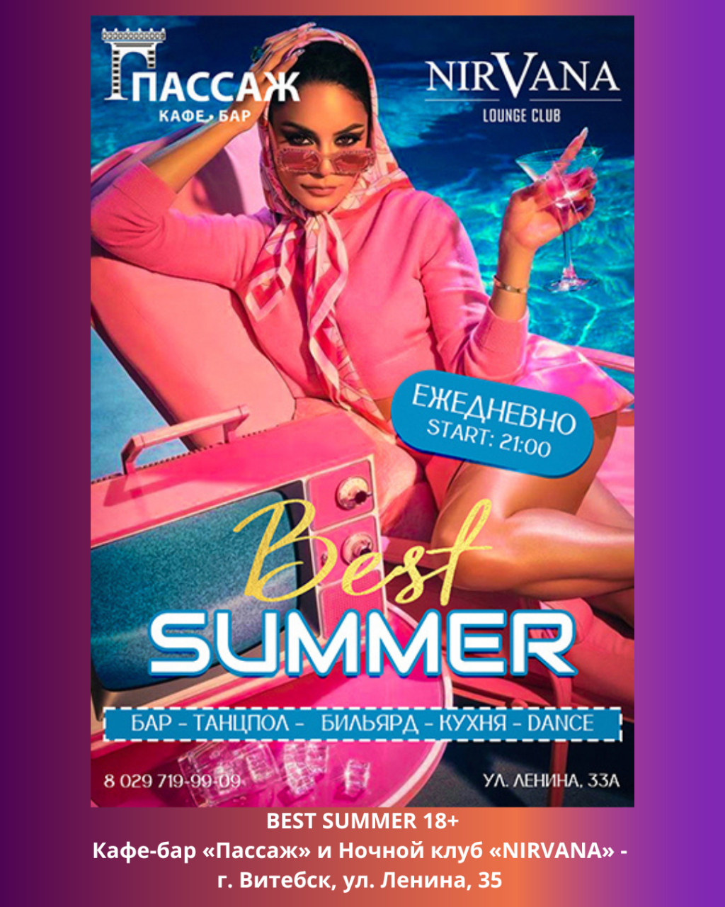 Вечеринки в понедельник? Легко! И во вторник, среду и четверг! Ведь двери Кафе-бара «Пассаж» и Ночного клуба «NIRVANA» открыты и по рабочим дням тоже!