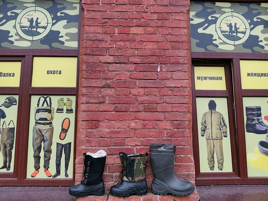 В зимний период уместно использовать утепленный комбинезон со спасательной функцией, зимнее термобелье, водостойкие сапоги. Широко представлена в магазине фирма Nordman - обувь из ЭВА (пенка, пробка). Отличается качеством и демократичной ценой. Обувь универсальная есть и для женщин, и для мужчин.