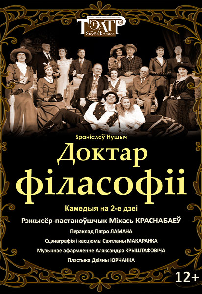 Национальный академический драматический театр имени Якуба Коласа жителей и гостей города приглашает на спектакль Доктар філасофіі 12+ во вторник в 19.00, а в четверг в 19.00 - на Пёс Белага вострава 16+.