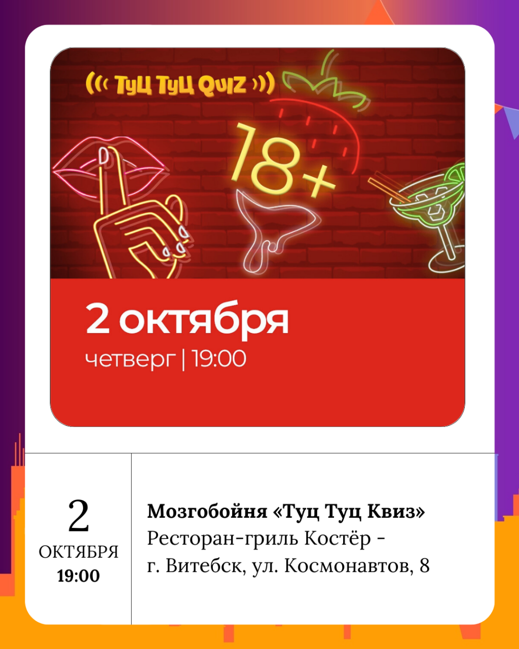 Витебск умеет веселиться даже в будни: вечер среды — это уже почти пятница, а вторник — отличный повод для танцев. Клубы зовут на тематические вечеринки, бары устраивают квизы и караоке, а уютные арт-пространства — на ламповые посиделки с винилом и вином. Рабочие дни не повод скучать — это шанс добавить немного драйва в рутину и встретить новых людей, которые тоже решили, что жизнь слишком коротка для скучных вечеров.