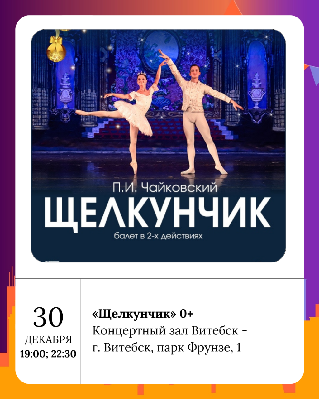 В концертном зале Витебск пройдет спектакль «Щелкунчик» 0+ 30 декабря.