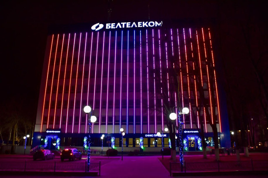 «Белтелеком», акцентируя внимание на фасаде своего здания в фиолетовых тонах, делает логотип компании более узнаваемым, привлекая к нему внимание жителей и гостей города. В компании уверены, что обновленный фасад станет яркой доминантой вечерних улиц и вызовет у прохожих положительные эмоции.
