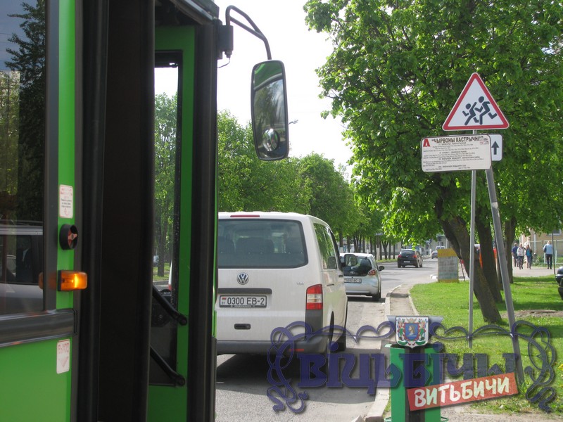 Не успеваем проехать и несколько остановок, как мой фотоаппарат фиксирует первое же нарушение: какой-то водитель поставил свою беленькую Subaru Legacy практически в нескольких метрах от начала остановки автобуса — в нарушение правила остановки и стоянки, которые в соответствии со статьей 143 Правил дорожного движения не допускаются в зоне действия запрещающих знаков, а также ближе 15 метров от остановочных пунктов (площадок), так как создают препятствие для движения пассажирского транспорта. Впрочем, улица Ленинградская — в сравнении с тем, что увидели мы в других районах Витебска, — оказалась практически идеальной для работы водителя автобуса.