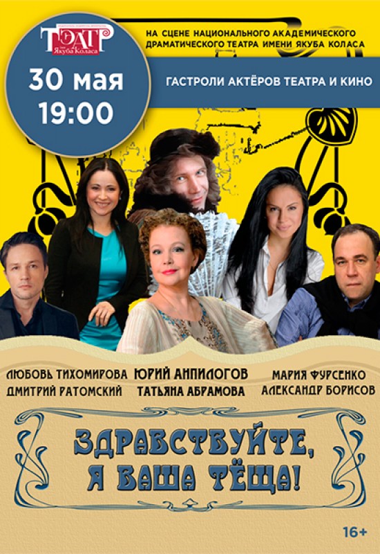 Национальный академический драматический театр имени Якуба Коласа сегодня, в пятницу, приглашает на спектакль Здравствуйте, я ваша тёща! 16+, а в субботу - на Гісторыю кахання 16+.