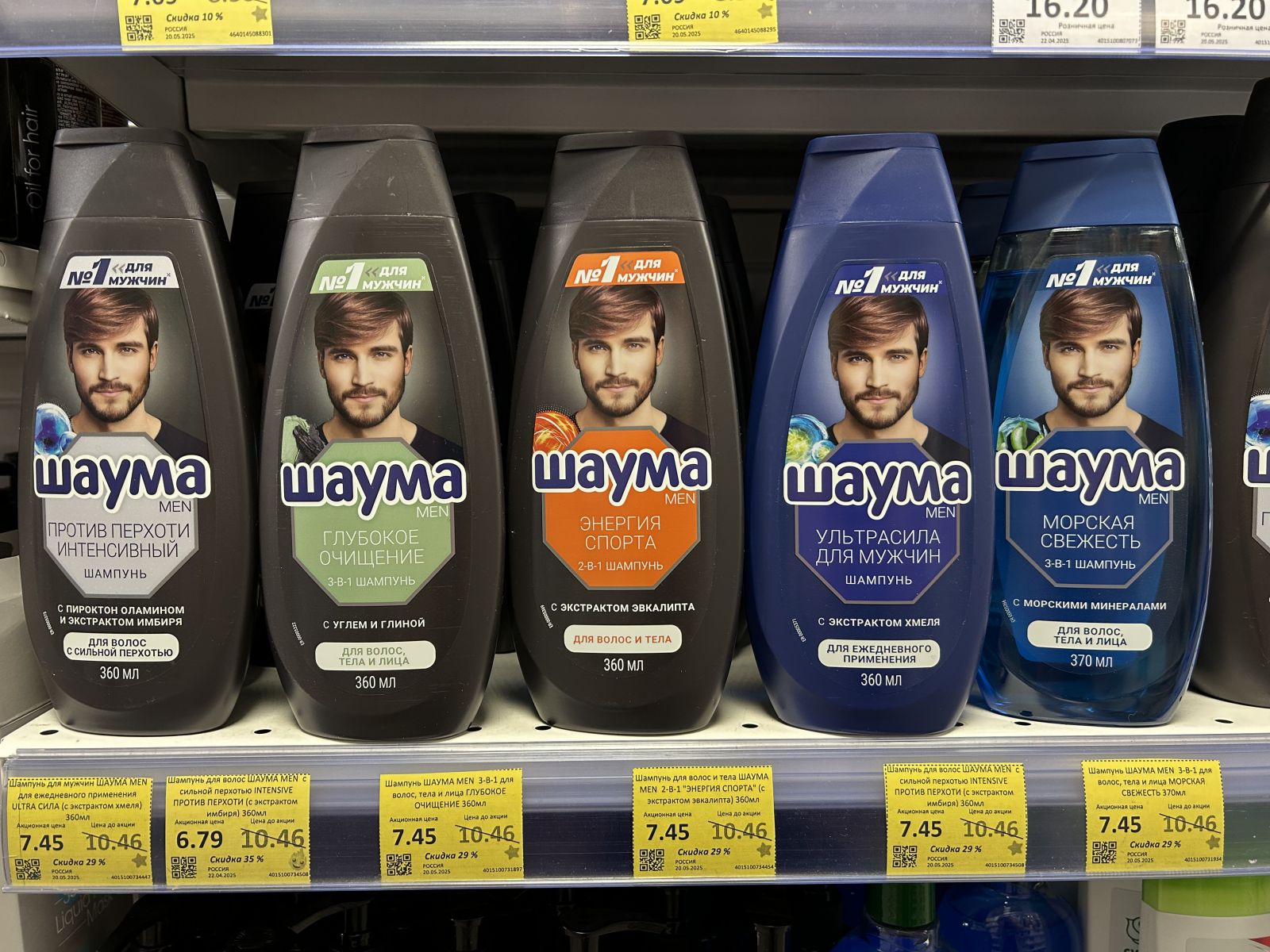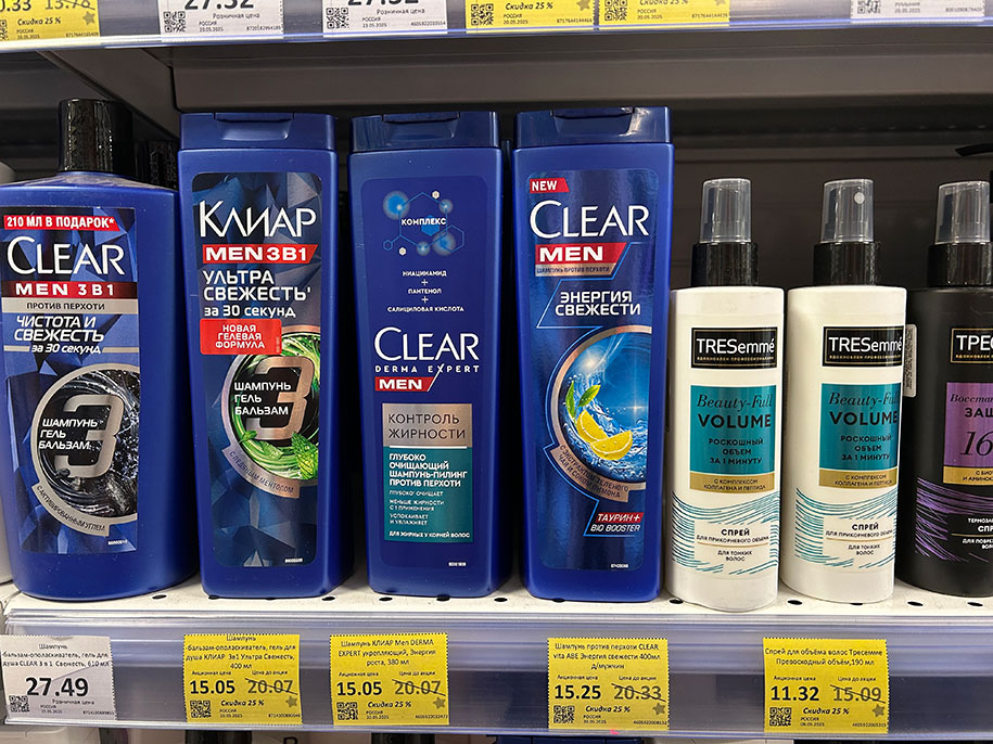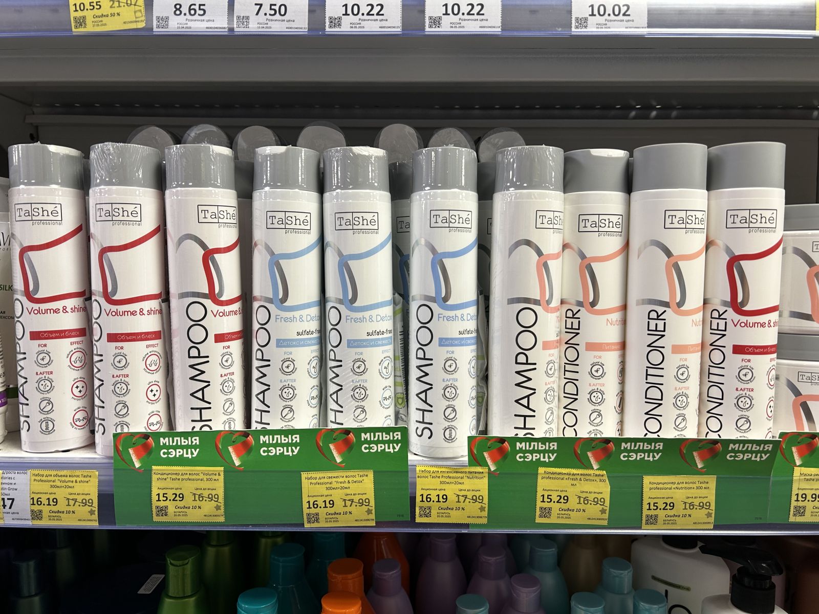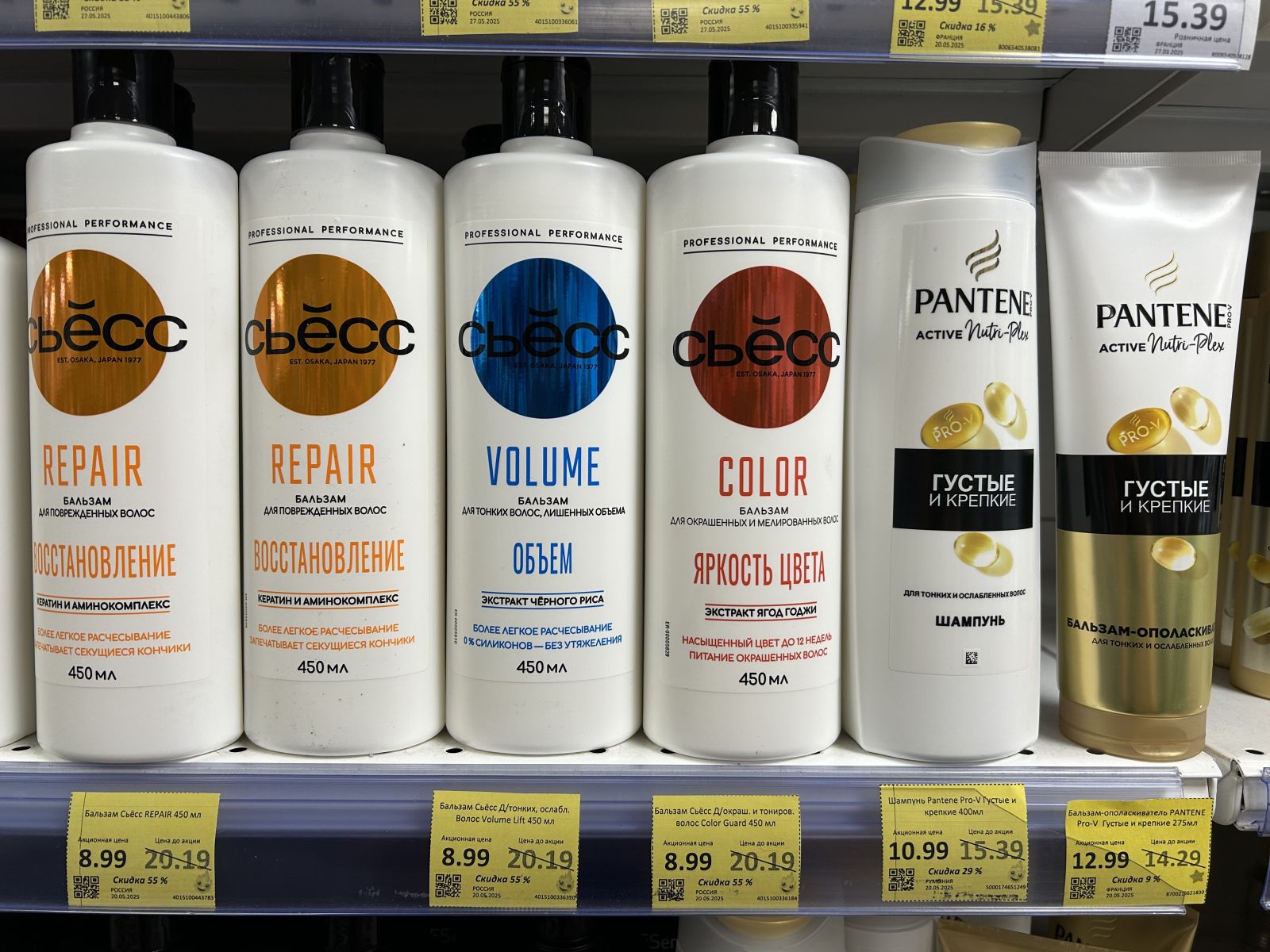 Так, шампунь «Cьесс», 450 мл, отдают за 8,99 руб., шампунь или бальзам для волос «Дав», 630 мл - 12,15 руб., шампунь Pantene, 400 мл - 10,99 руб., «Чистая линия», 400 мл - 4,89 руб., Head & Sholders, 600 мл - 18,99 руб., шампунь, бальзам или маска для волос Bloom, холодный блонд - 6,99 руб.