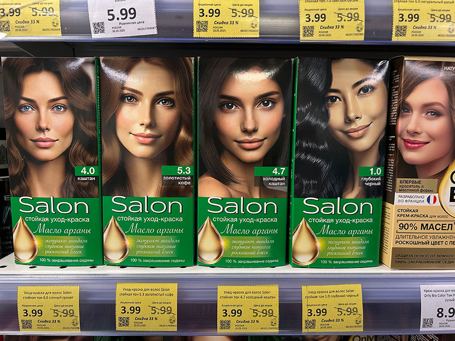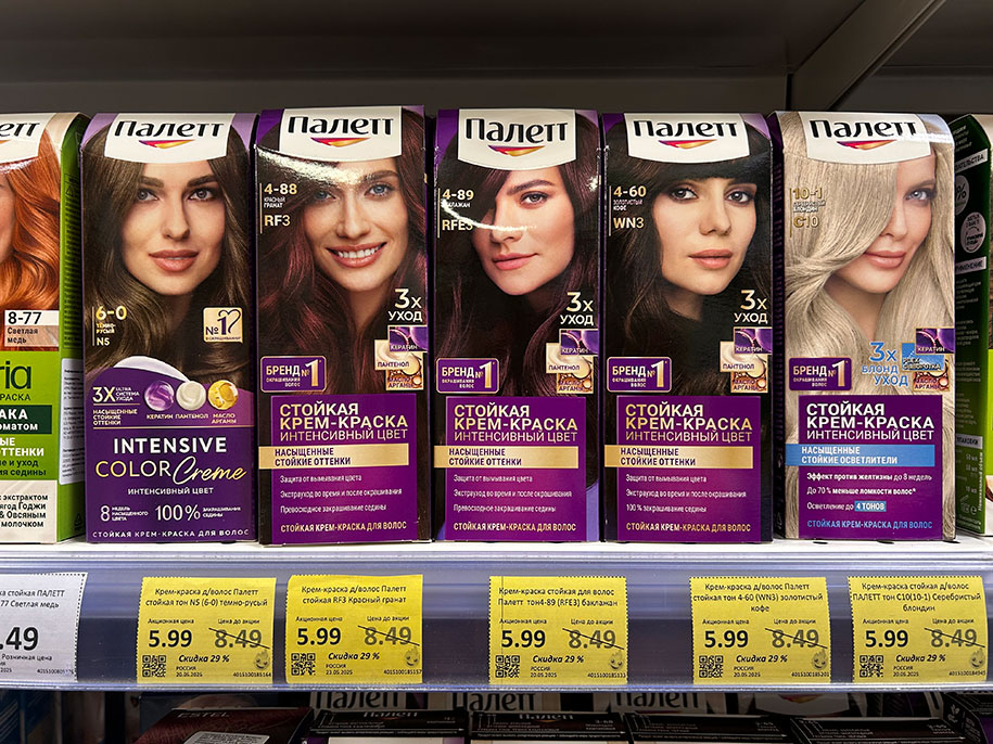 Снижена цена на большой ассортимент красок разных тонов брендов «Палетт» - 5,99 руб., «Глисс кур» - 10,99 руб., Salon - 3,99 руб.