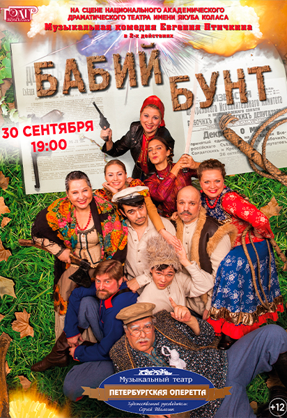 Обсудить завтра можно будет Бабий бунт 12+, если вы сегодня сходите в Национальный академический драматический театр имени Якуба Коласа. Спектакль привез нам Музыкальный театр "Петербургская оперетта". Со вторника по среду на сцене "Свердловская музкомедия". Побывать можно на Тётка Чарли 16+, Оттепель 16+ и Звёздные песни 12+.