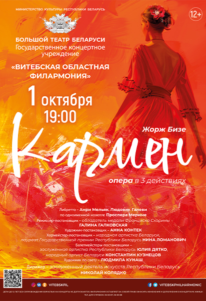 Витебская областная филармония уже завтра приглашает на "КАРМЕН" — ГАСТРОЛИ БОЛЬШОГО ТЕАТРА БЕЛАРУСИ 12+. Спешите купить билет и стать свидетелем долгожданного события – гастролей Большого театра Беларуси с полномасштабной постановкой «Кармен» в Витебске!