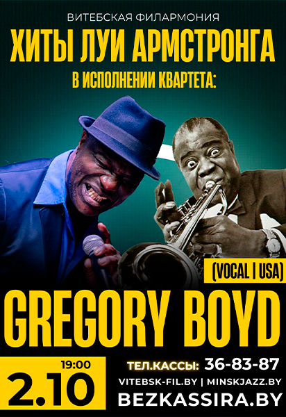 ХИТЫ ЛУИ АРМСТРОНГА в среду исполнит ГРЕГОРИ БОЙД КВАРТЕТ (США) 6+.