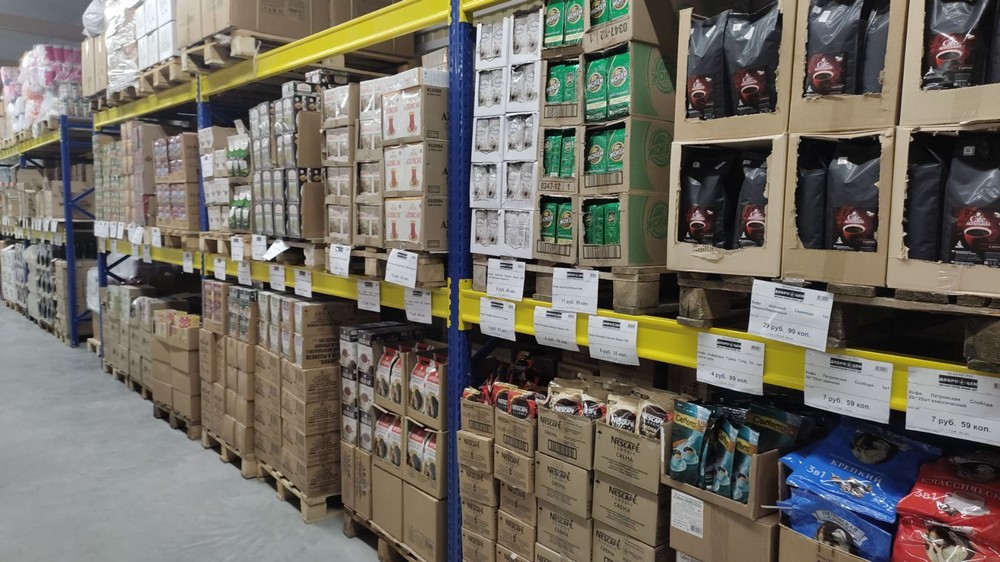 У многих покупателей возникает вопрос: "Почему цены здесь на порядок ниже, чем в обычном супермаркете?" Одна из причин - организация хранения и выкладки товара. Здесь нет деления на торговый зал и склад. Все находится в одном помещении. С одной стороны, это - оптимизация пространства, с другой - экономия на персонале, его требуется меньше. А чем ниже затраты магазина, тем меньше наценка.