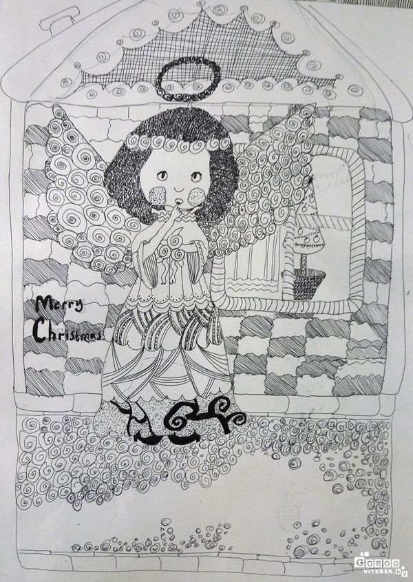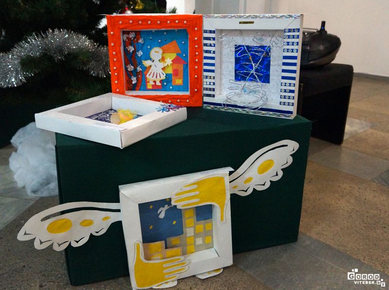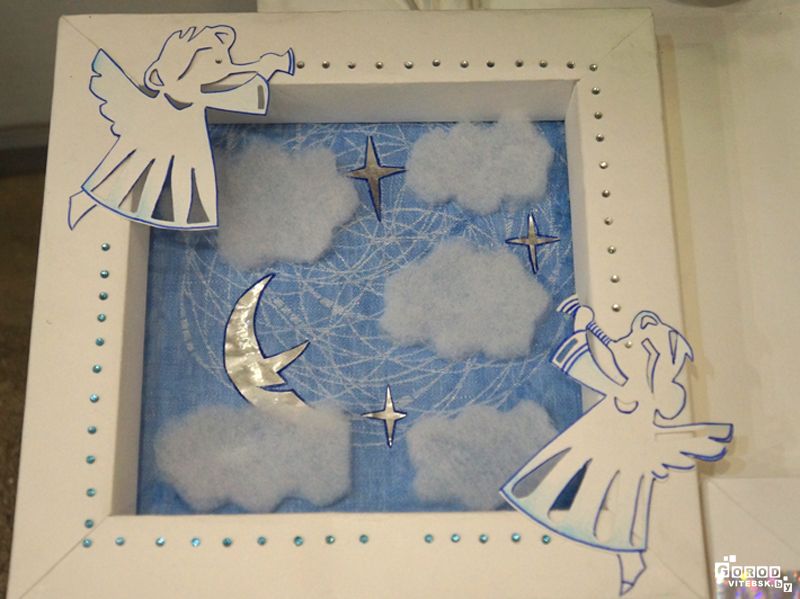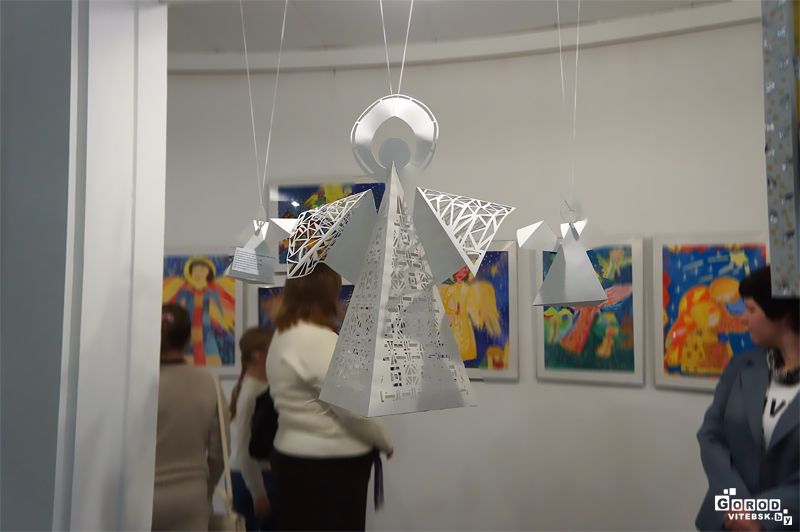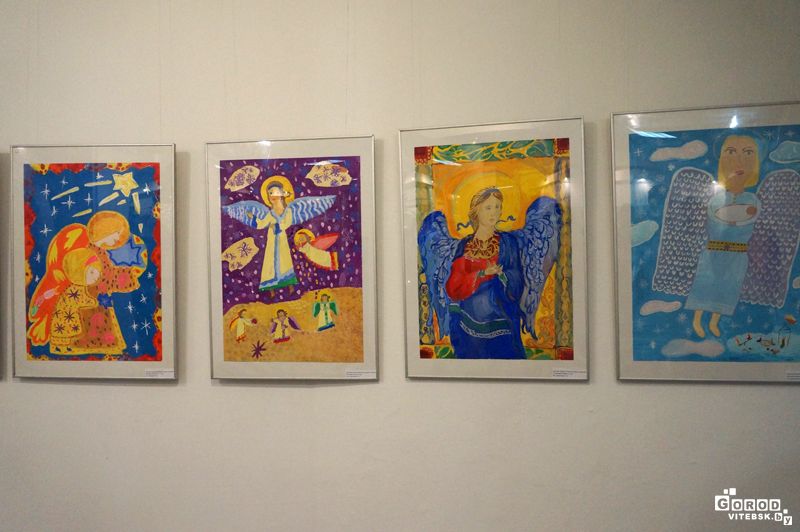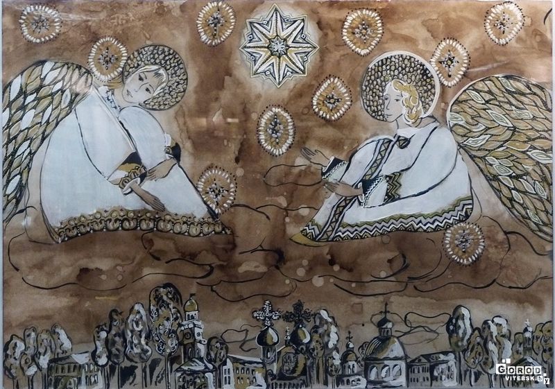 Творческие работы юных художников передают детские представления о Новогоднем волшебстве, вселяют надежду на осуществление мечты каждого человека, верящего в чудо. Кажется, что Ангелы осеняют своими крылами родной Витебск, его парки, дома и жителей, оберегают нас от суеты и печали, осыпают звездочками счастья и радости.
