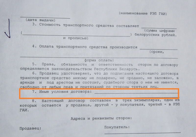Чтобы оформить продажу авто в рассрочку, достаточно одного договора. Это можно прописать в пункте № 7 «Иные условия»