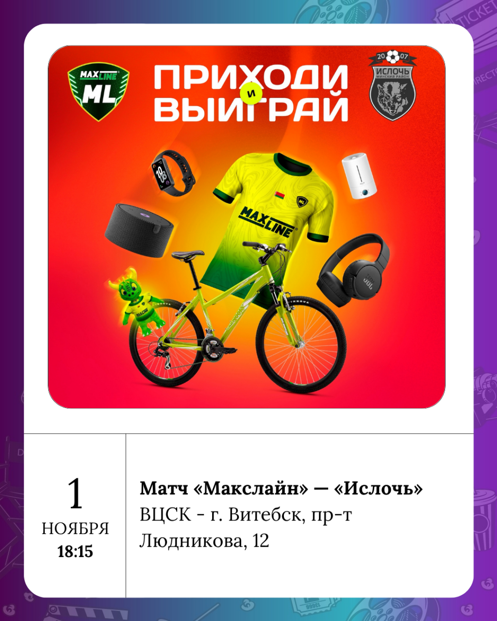 А если душа требует танцев и драйва — вечеринки в Витебске не подведут! В клубах уже настраивают свет, диджеи готовят плейлисты, а бармены — коктейли с хэллоуинским настроением. Надень что-нибудь дерзкое, прихвати друзей и окунись в ночь, полную музыки и веселья!