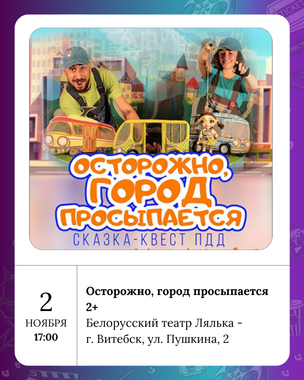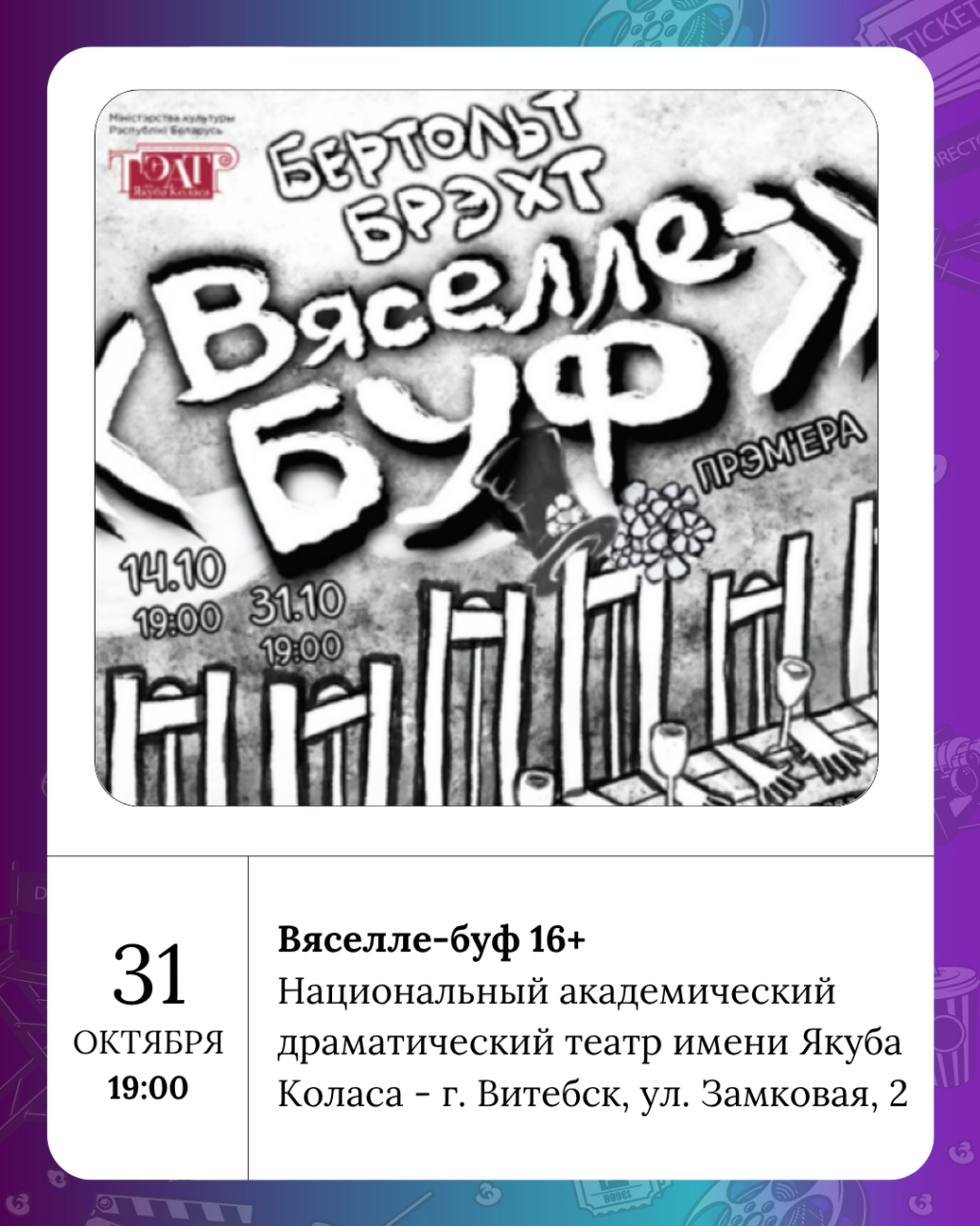 Хороших выходных! Пусть они будут яркими, как витебские витрины, тёплыми, как плед в любимом кафе, и вдохновляющими, как вечер в театре. Увидимся на обзоре в понедельник!