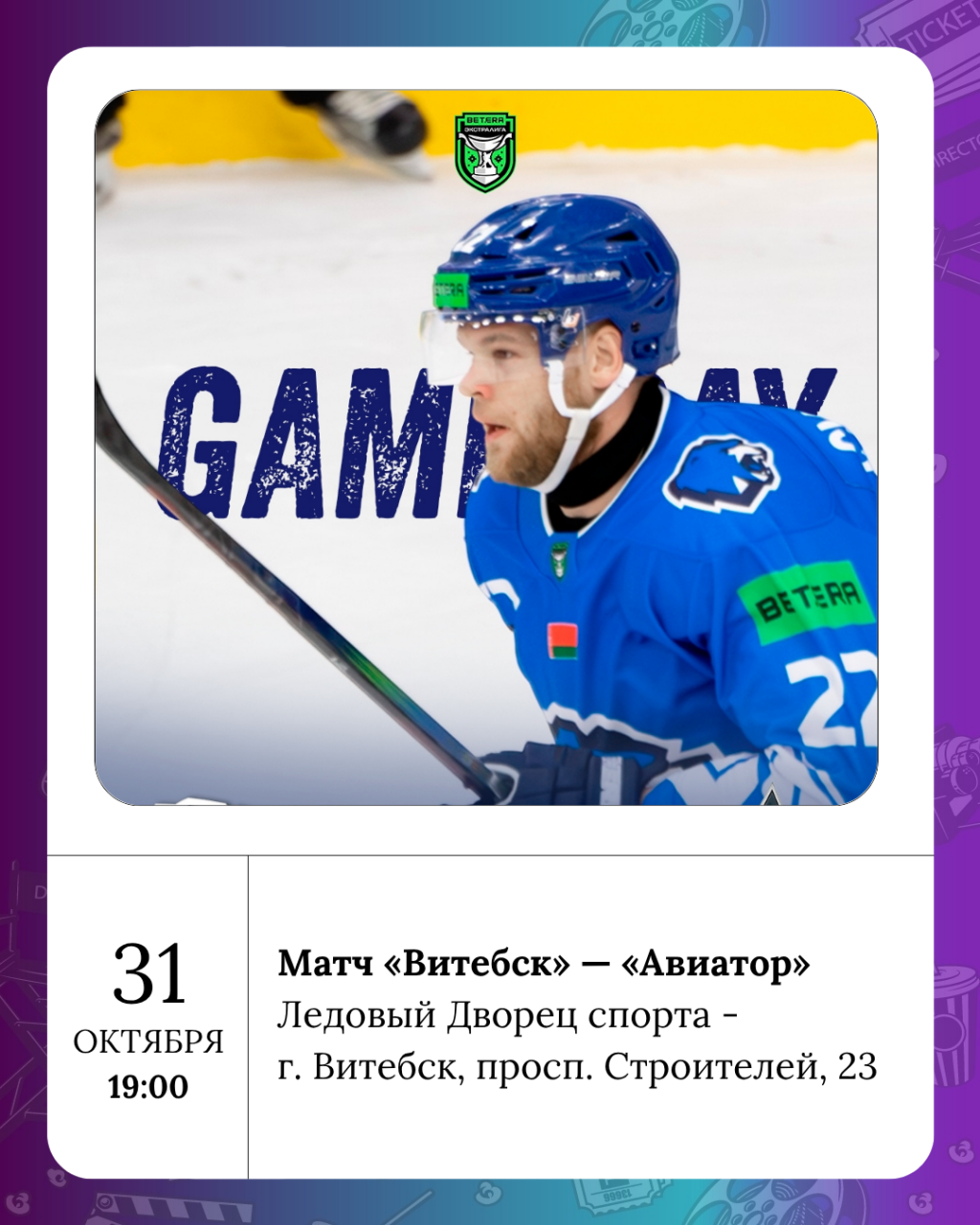 Матч «Витебск» — «Авиатор» пройдет сегодня в Ледовом. Болеем за наших!