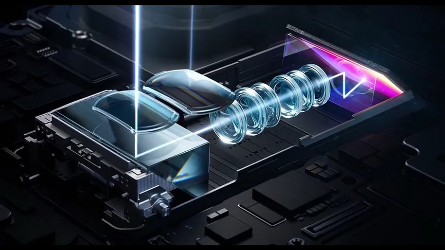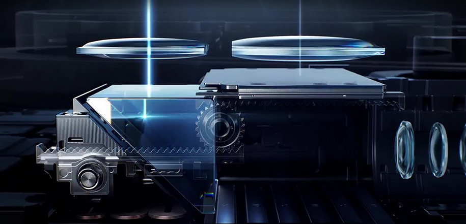 При этом было важно сохранить два популярных фокусных расстояния, которые соответствуют примерно 4-кратному и 10-кратному увеличению. Первый используется преимущественно для портретов и среднего зума, второй – для дальних кадров. Совместить два объектива с одним сенсором было решено с помощью подвижной конструкции с двумя призмами и сложной оптической системы с многократным отражением света.