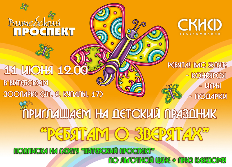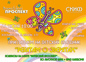 11 июня в 12 00 в Витебском зоопарке (Ул.Янки Купалы, 17) пройдет детский праздник «РЕБЯТАМ О ЗВЕРЯТАХ».