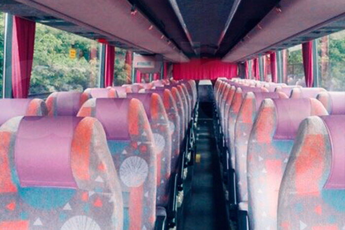 55 мест. Автобус оборудован мягкими туристическими сиденьями, раздвигаются в проход для удобства. Телевизор, кондиционер, usb зарядки для каждого пассажира.