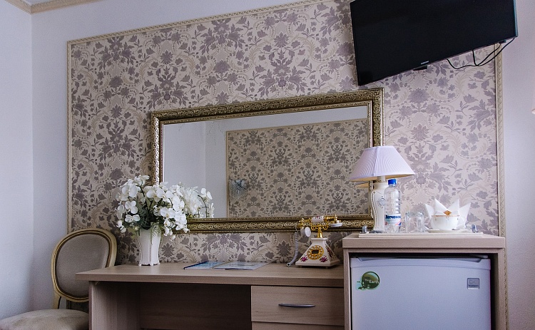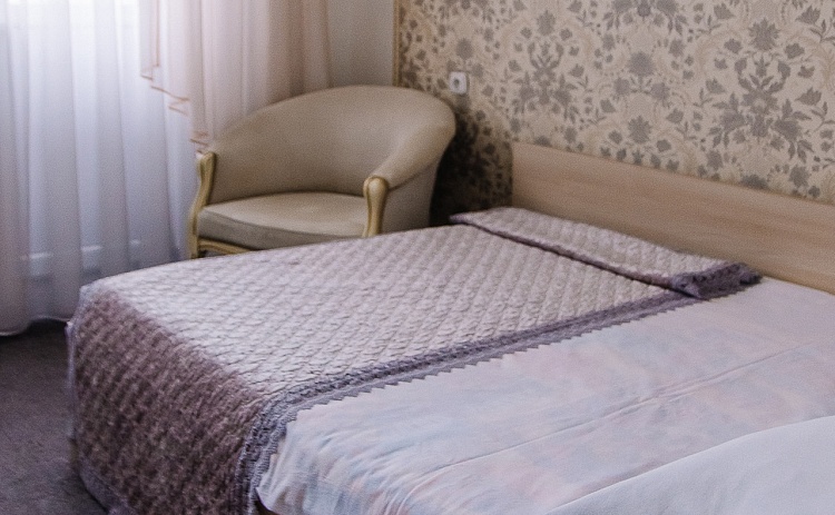 Однокомнатный номер повышенной комфортности для одноместного размещения с кроватью 1,2 м и рабочей зоной, оснащен телевизором и холодильником. В ванной комнате бесплатные косметические принадлежности. Ежедневная уборка номера и смена полотенец. Фен предоставляется по требованию гостя бесплатно. Кулер с холодной и горячей водой находится на этаже.