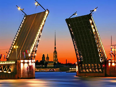 23-30 Ночная экскурсия: «Город, где разводят мосты!». Ни один город в мире не может похвастаться таким количеством разводных мостов, как Санкт-Петербург. Только представьте себе: в самый разгар Белых Ночей солнце опускается за горизонт на считанные минуты. Город надевает свои лучшие наряды, а мосты возносятся к небесам. Именно в эти моменты Санкт-Петербург становится самым романтичным городом мира! И мы предлагаем Вам самим в этом убедиться.