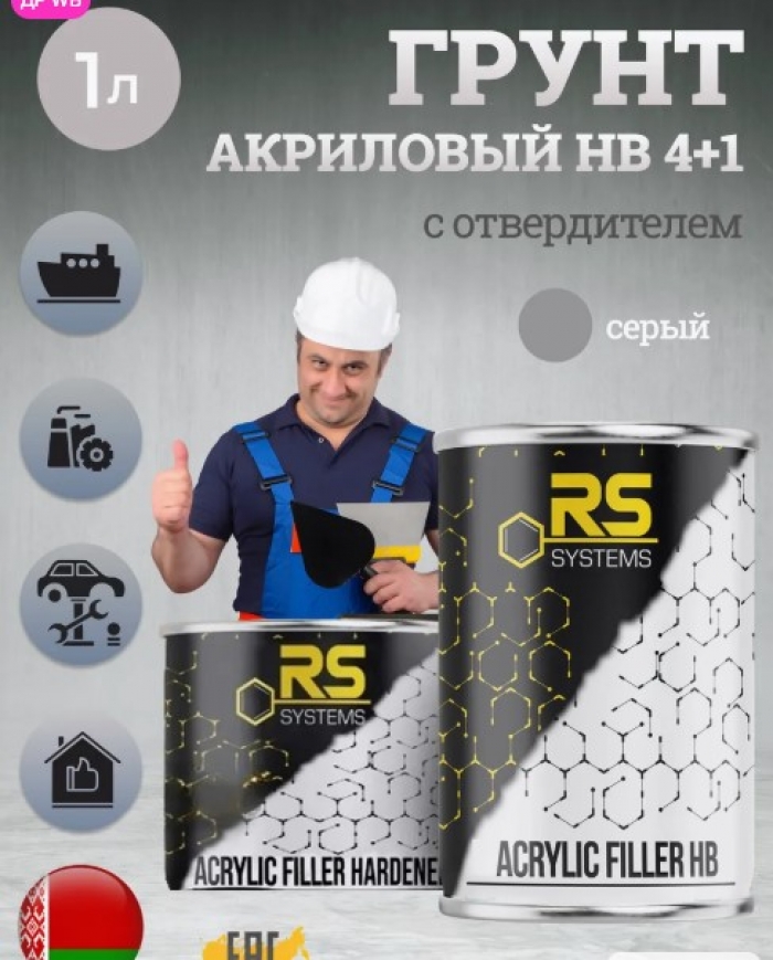 Двухкомпонентный высококачественный эпоксидный грунт «EPOXY PRIMER 4+1» прорывного инновационного белорусского брэнда «RS Systems», содержащий антикоррозионные пигменты.